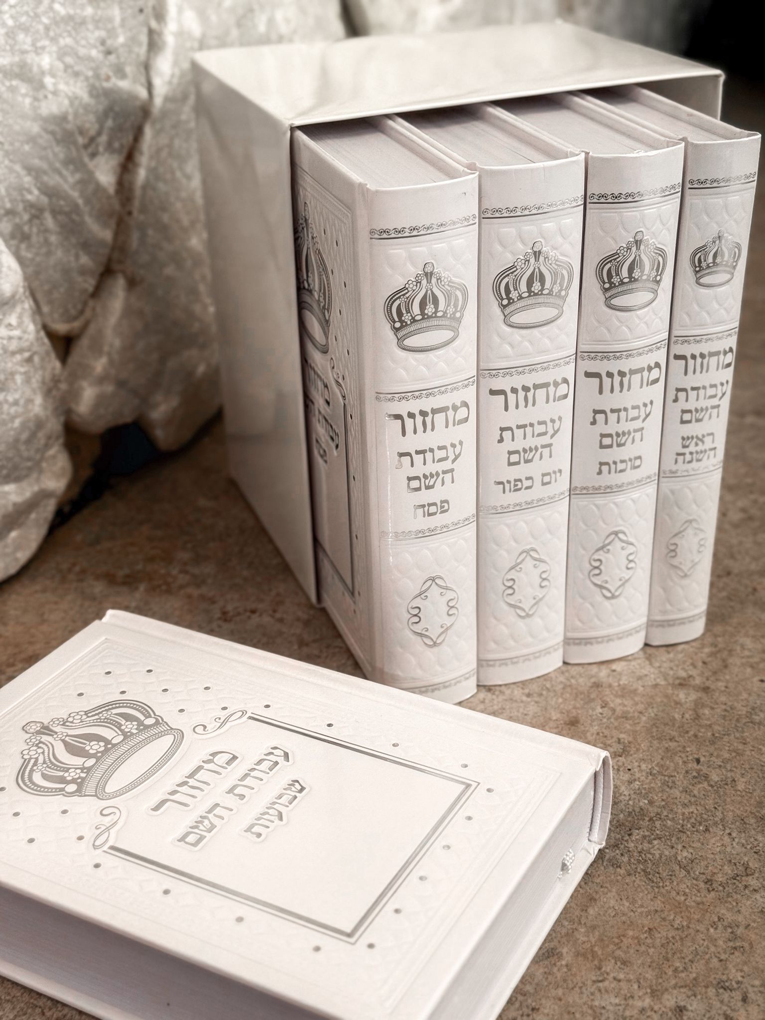 מחזור חמישה סידורים לחגים דגם "כתר" צבע לבן כסוף