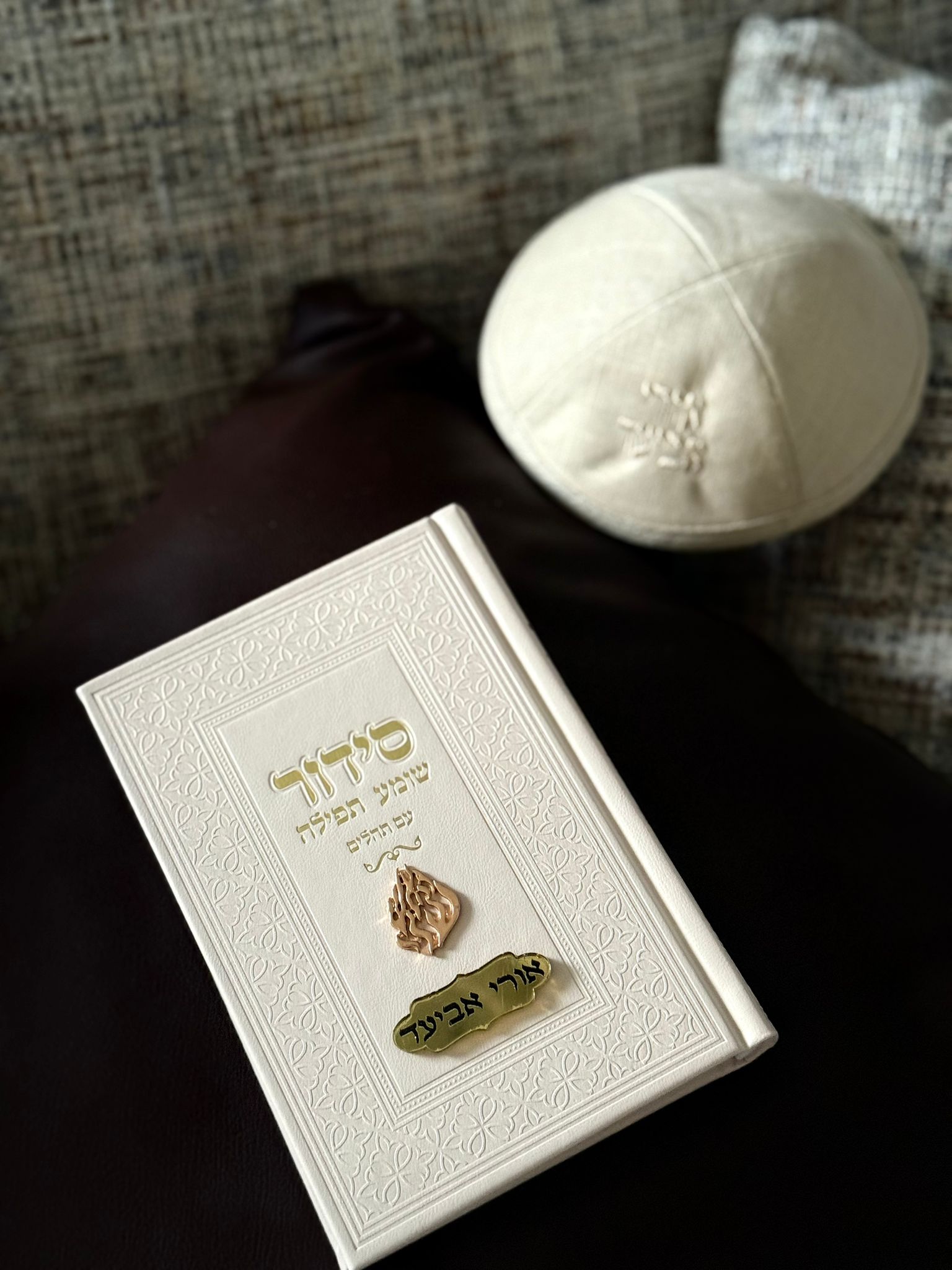 סידור שמנת דגם האש שלי מעוטר בתוספת צארם זהב ,עם פלטת חריטת לייזר שם אישי