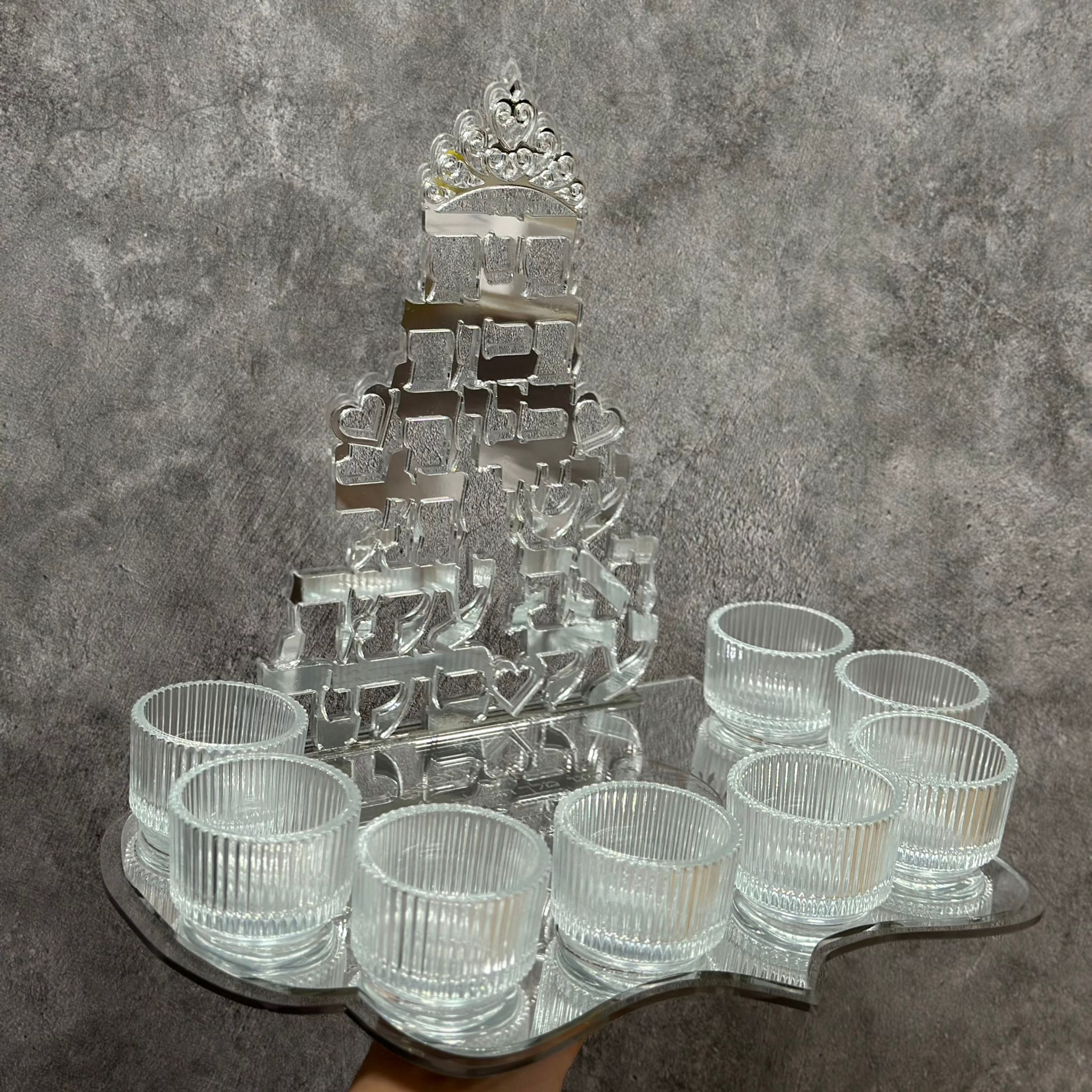 מעמד הדלקת נרות 8 קנים בחיתוך וחריטת לייזר עם חיתוך שם אישי + ברכת " רבות בנות "