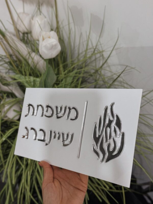 שלט כניסה לבית בחיתוך וחריטת לייזר שם משפחה אישי עם סמל האש שלי {מגיע עם דבק דו"צ להרכבה מהירה}