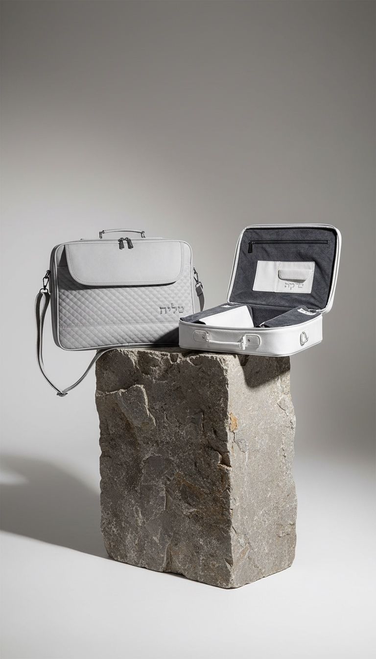 תיק מזוודה גדול עם חלוקה פנימית , תא לצדקה , תא לרש"י ותא לר"ת , גוון אפור פיו מפואר 43X36 ס"מ.